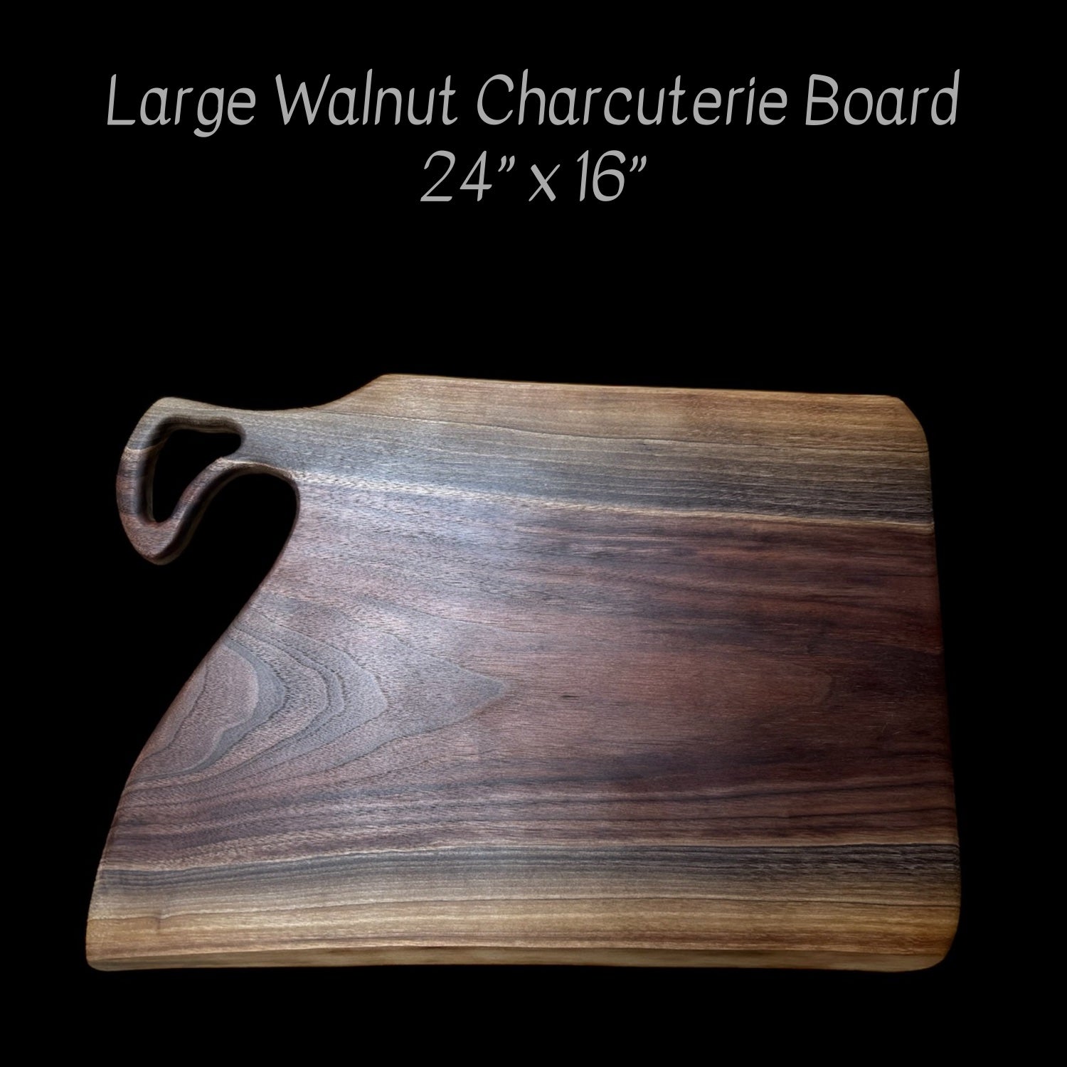 Crafted of premium Walnut, this board is a must for even the pickiest of entertainers. This generously sized board also makes a great serving tray. 24"W x 16"H.